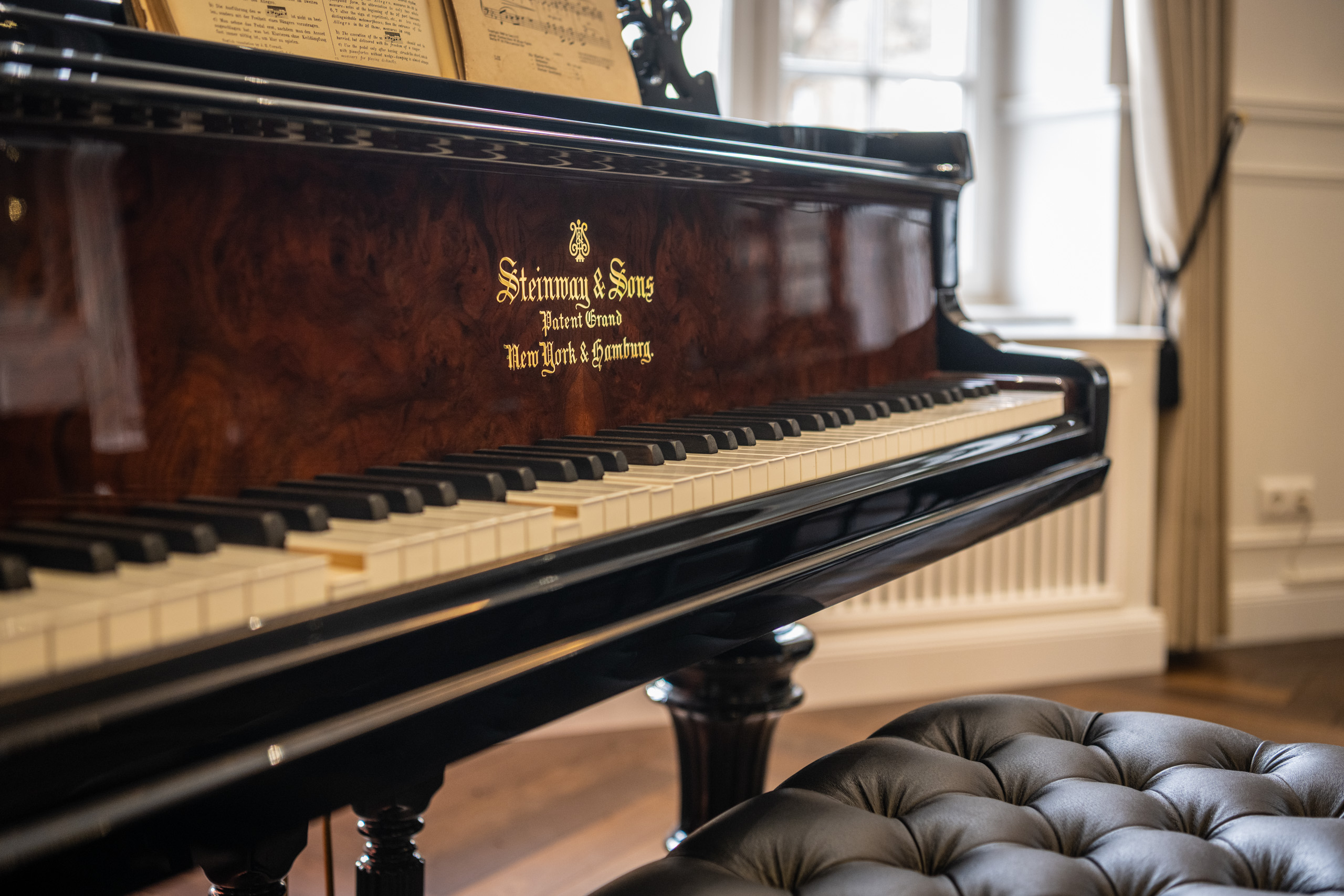 oder seien Sie Teil des Klangerlebnisses, wenn unser Steinway Flügel bespielt wird, oder wie von Geisterhand in die Tasten spielt.